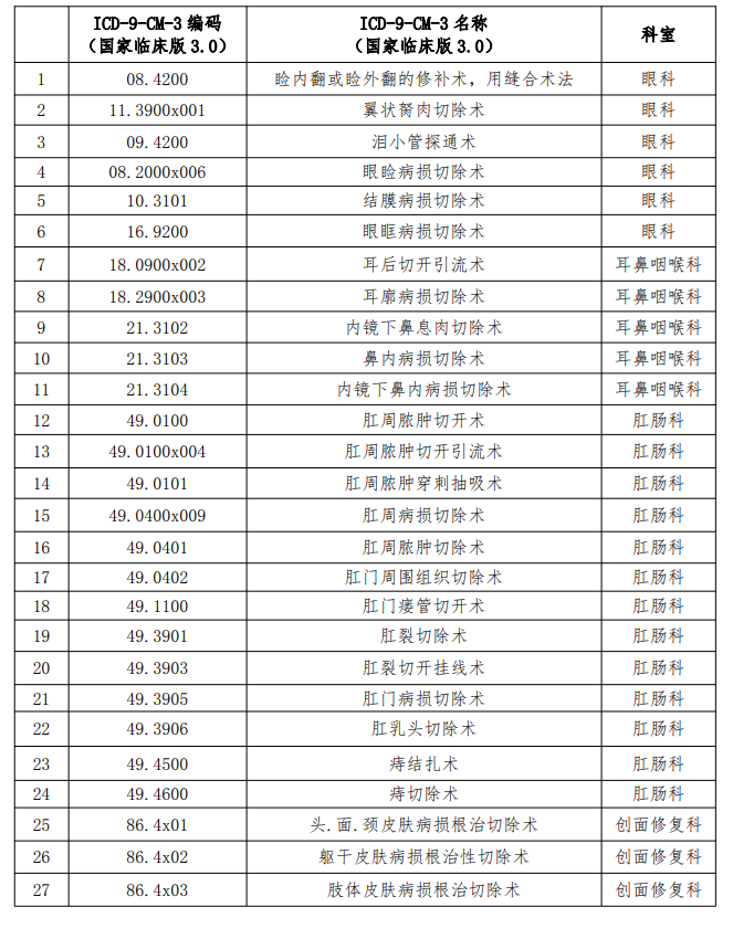 日间手术病种和技术目录